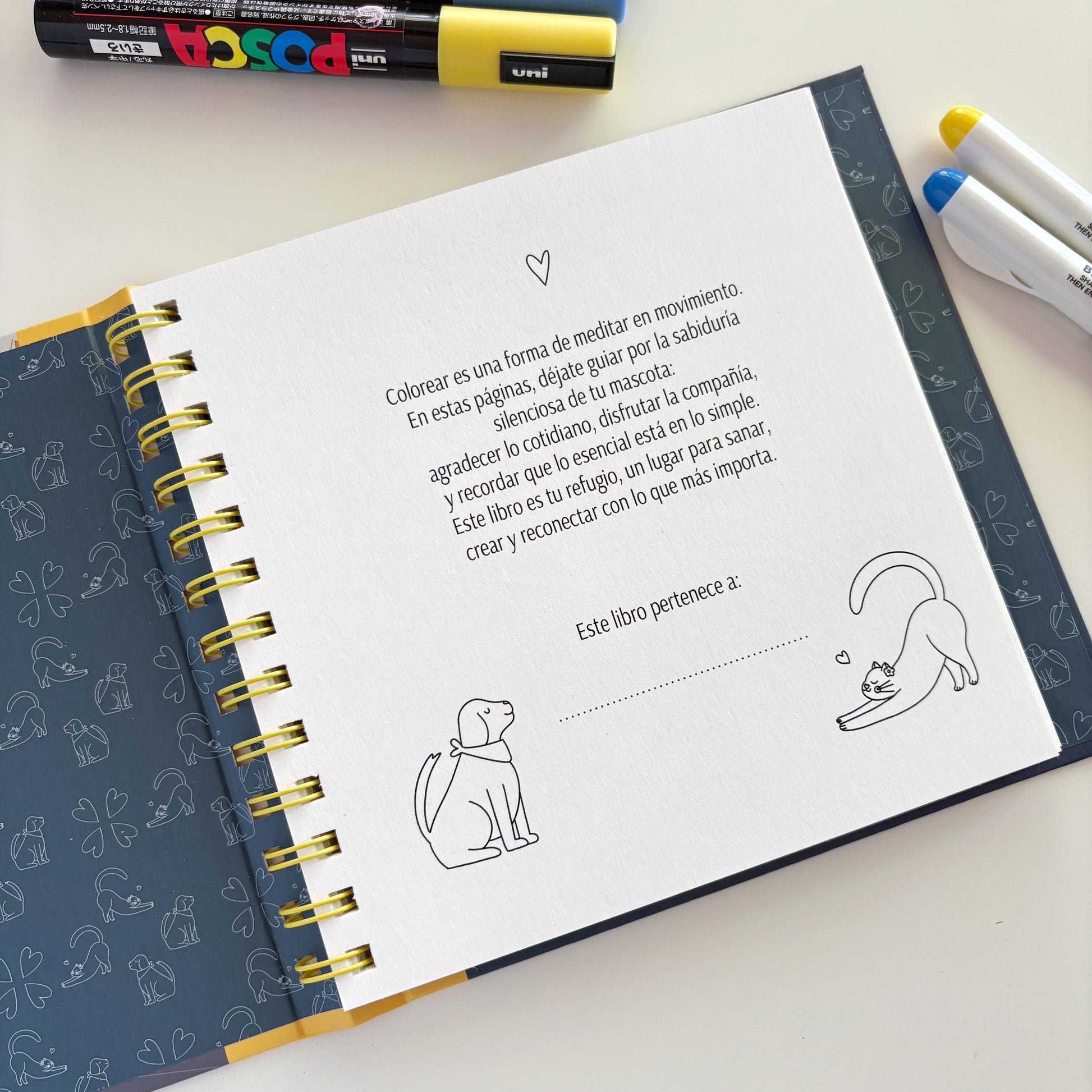Mindful Friends es un libro para colorear que nace desde ese tipo de amor: el que nos ofrecen los perros y gatos cuando nos devuelven al presente sin esfuerzo.